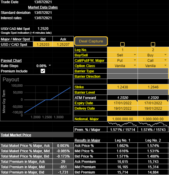 - Protected rate: 1.2385. Right to sell USD and buy CAD at this exchange rate.
